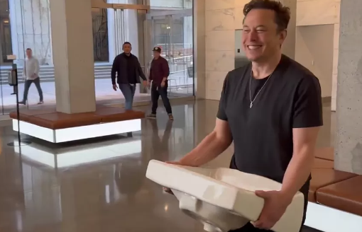 2022年10月27日,马斯克抱着水槽进入推特总部