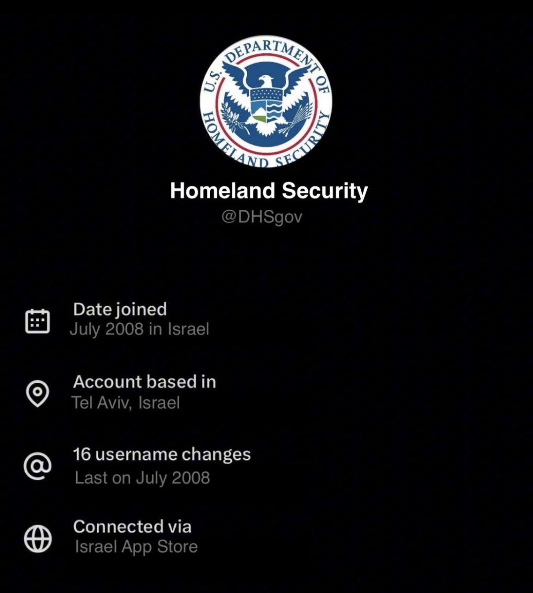 显示美国国土安全部账号IP归属地为以色列的截图